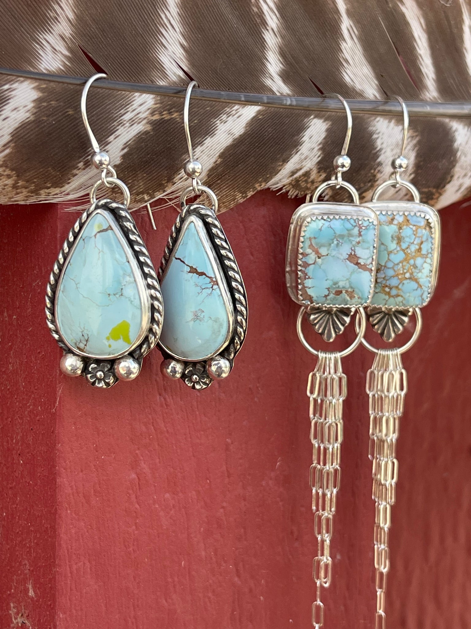 Beautiful light blue Sandhill Turquoise earrings for your consideration! They are so lightweight, you’ll only remember you’re wearing them when you receive a compliment. They are not a perfect match